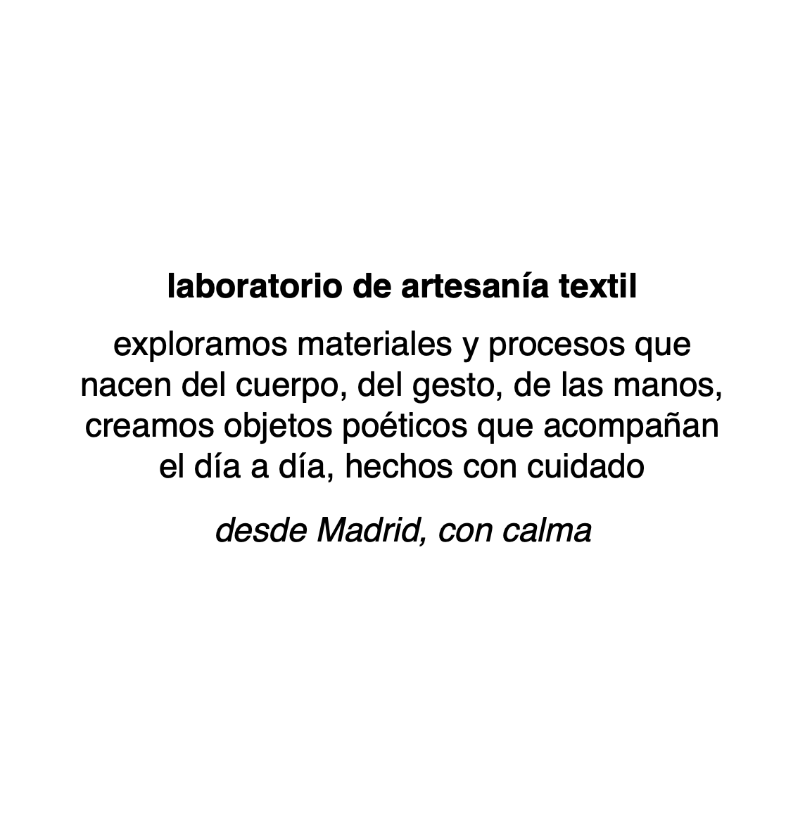 Nuestros productos se fabrican uno a uno mediante técnicas artesanales en nuestro atelier en Madrid, poniendo mucho cariño en cada parte del proceso. Seleccionamos cuidadosamente a nuestros proveedores de materias para garantizar productos de alta calidad.